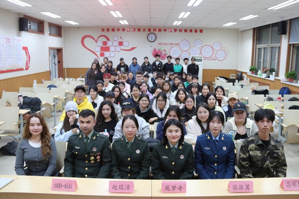 在10教116教室顺利举办了“以青春之我,守护盛世中华”朋辈分享活动第二期。本次活动特邀四位退役学生和学校国旗护卫队成员,预科2501班全体学生、班主任及澳门银河app