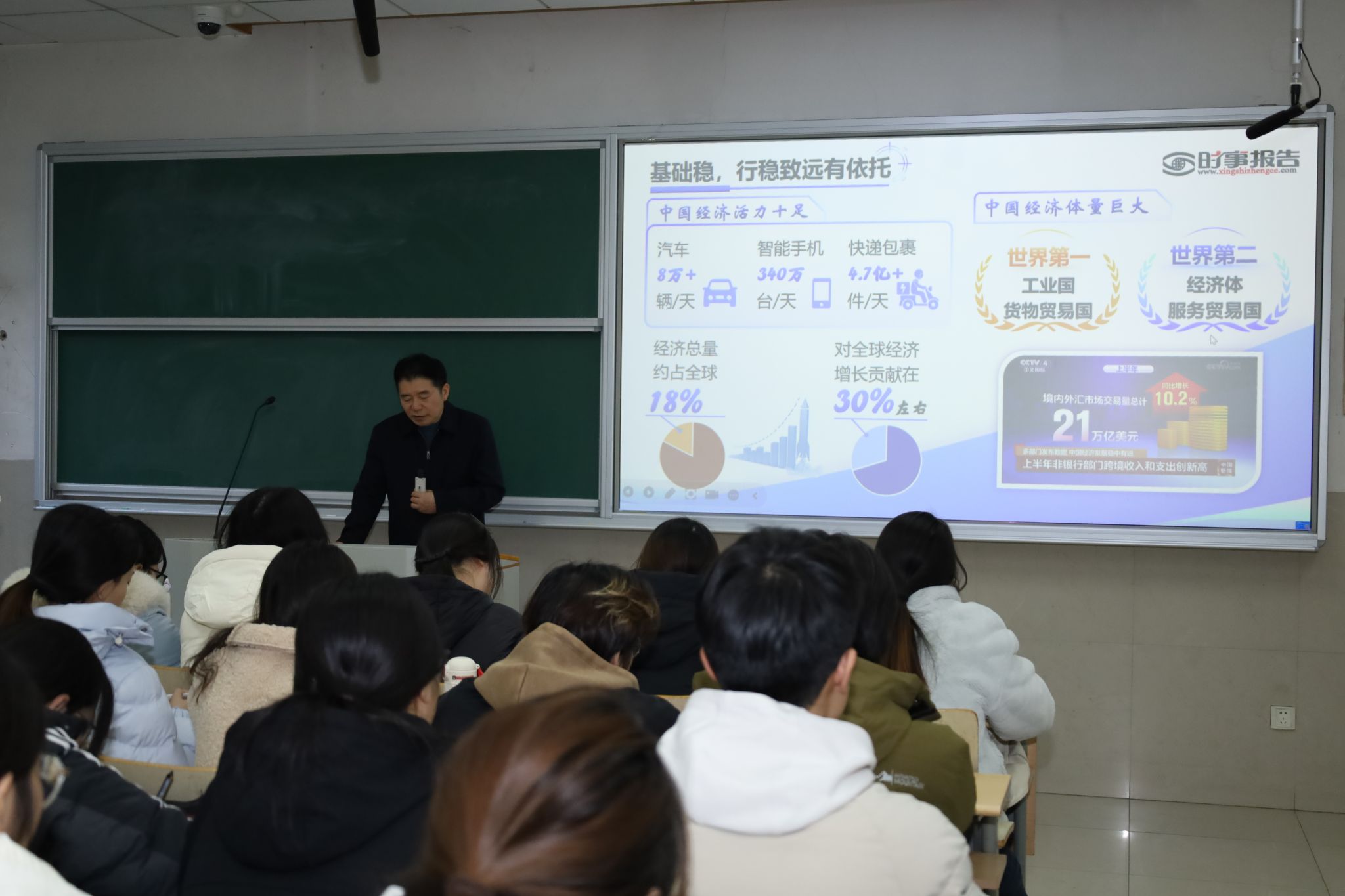 课上,续铁以“正确认识中国经济热点问题”为主题,立足中国经济发展数据与2025年经济发展态势,通过数据论证、案例分析等方式深入分析了当前中国的经济基础和内外部环境,通过剖析中国经济发展的“变”与“不变”,引导学生理解中国经济发展的深层逻辑。