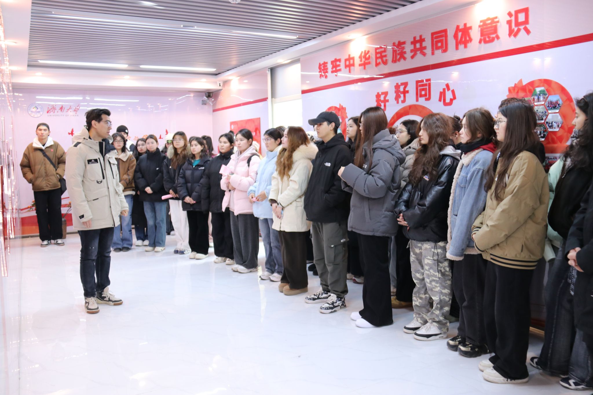 在“石榴籽“工作室,同学们通过图文展示、案例讲解等形式,全面了解了工作室在基础建设、人员配备、特色活动开展等方面的具体情况。从民族团结进步主题活动到少数民族学生帮扶举措,从榜样学子成长故事到共建和谐校园的生动实践,让同学们深切感受到学校对少数民族学生的关怀与重视,深刻领悟到 “各民族像石榴籽一样紧紧抱在一起”的深刻内涵。通过身临其境的观摩学习,进一步强化了学生的思想认同与行动自觉,为持续开展民族团结进步工作奠定了坚实基础。