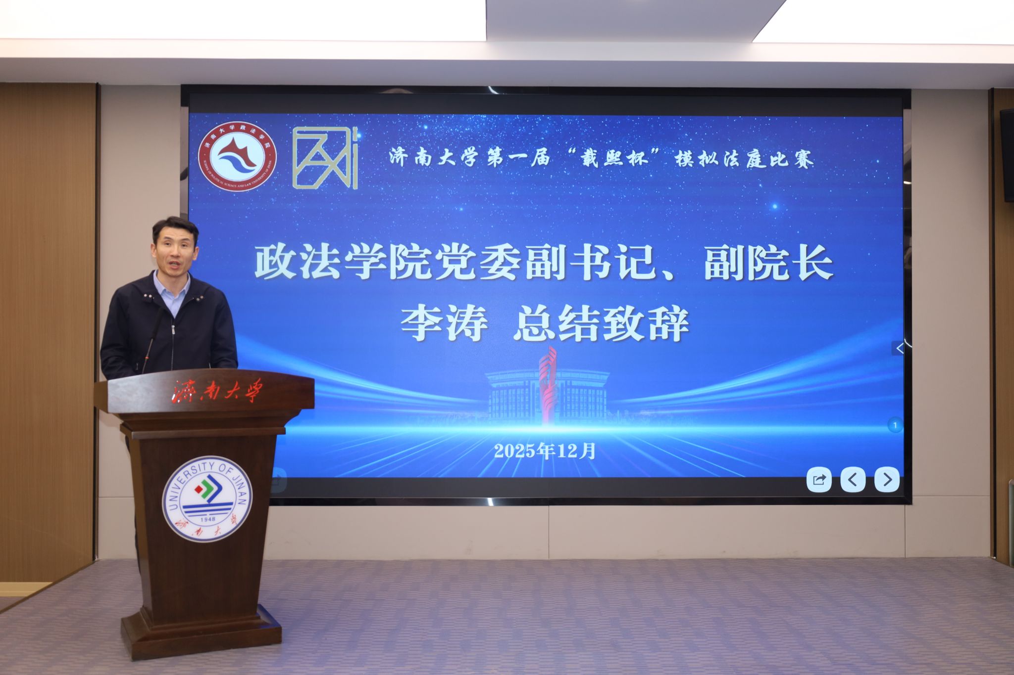 团委承办,山东载熙律师事务所冠名支持的济南大学第一届“载熙杯”模拟法庭比赛总结暨颁奖典礼活动在第五学术报告厅举行。