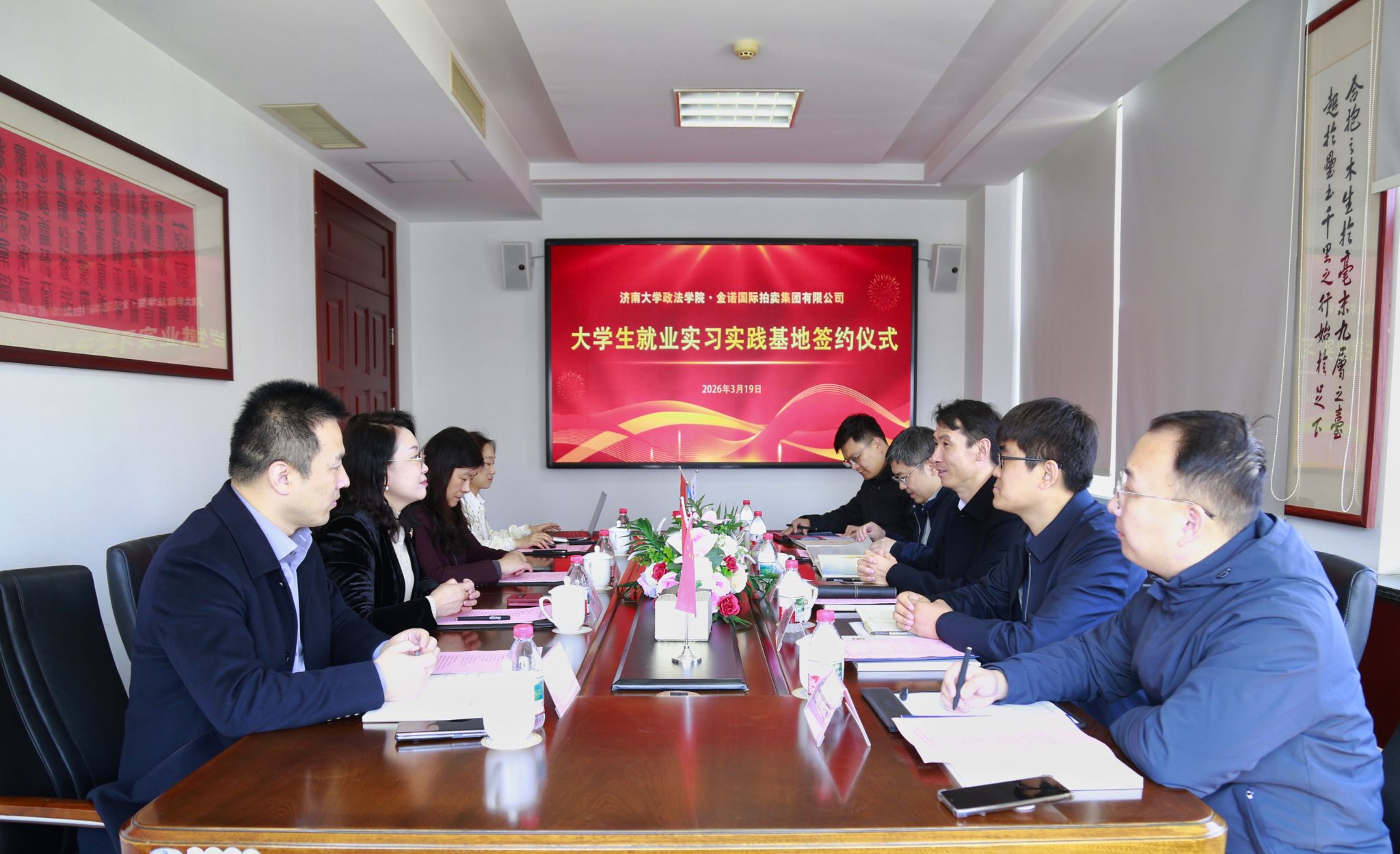 党委副书记、副院长李涛,副院长张国栋,院长助理陈强,辅导员沈正浩、李纪亮一行赴金诺国际拍卖集团有限公司走访交流,举行大学生就业实习实践基地签约暨授牌仪式。沃尔德集团总裁林擘,金诺国拍集团总裁位琳,沃尔德集团办公室主任李群,金诺司辅信息服务(山东)有限公司总经理刘仰军,金诺国拍集团办公室主任申玉雪等出席活动。