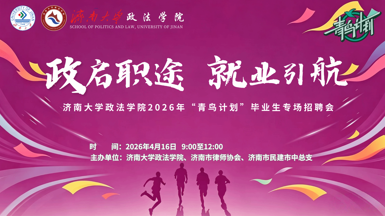 官网、“济大政法党建在线”微信平台等为参会单位提前宣传,发布参会单位名单和展位号、专场招聘会审核等信息,请参会单位注意查看。