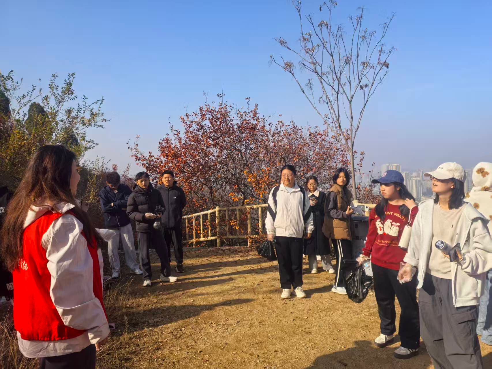 活动当天,志愿者们于学校九食堂门口集结,分组领取垃圾袋和清洁工具后,集体前往马武寨山。登山途中,志愿者们对塑料瓶、纸屑等垃圾进行捡拾与分类清理,还原山林洁净风貌。活动期间同步设置多项互动环节:环保知识竞答环节,志愿者们围绕垃圾分类等内容踊跃作答,现场氛围热烈;自然观察环节,大家认真辨识植物种类,记录植被特征,并以镜头定格山间生态景致;团队协作游戏环节,志愿者们携手完成任务,欢声笑语与汗水交织,尽显青春活力。志愿者们的每一步攀登、每一次俯身,都诠释着对自然的热爱与生态环保的责任。