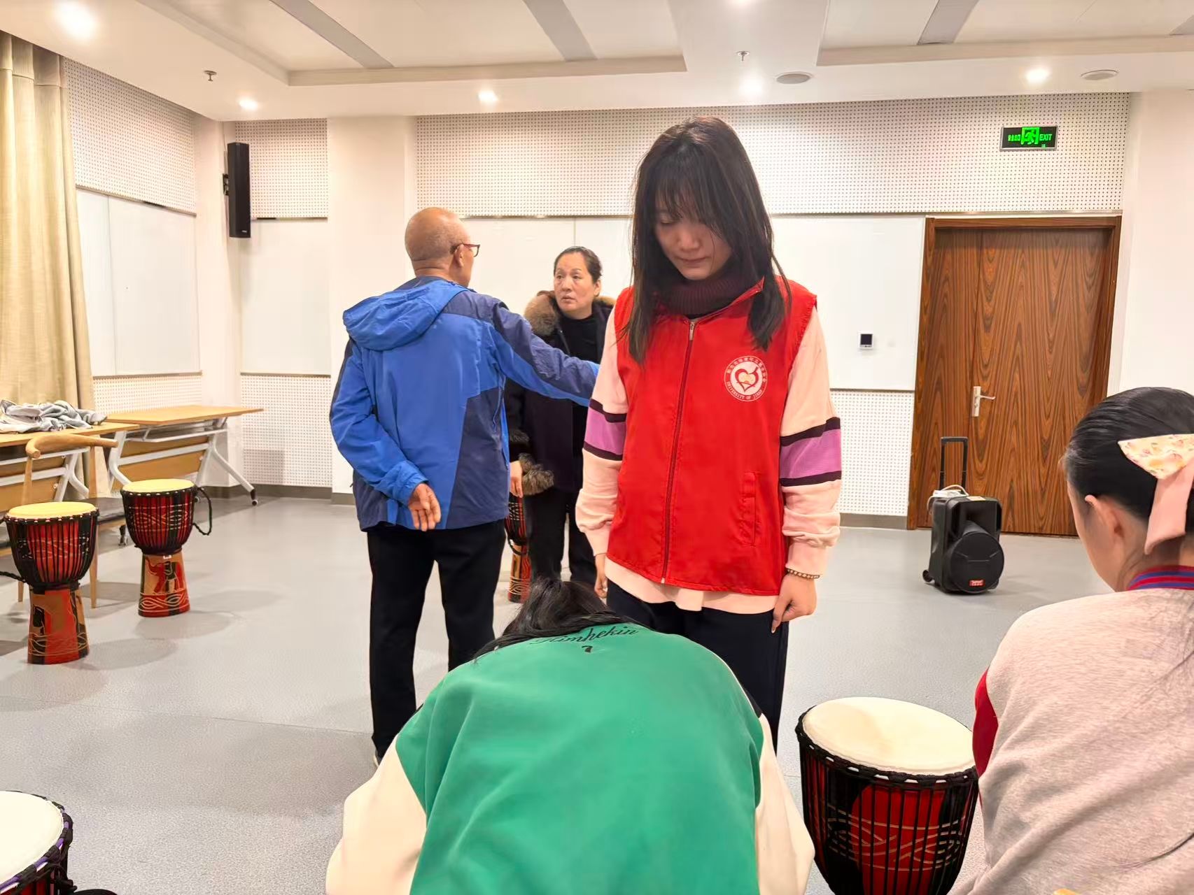 阳光先锋青年志愿者协会(以下简称“政法青协”)于2025年11月8日上午9:00至12:00,在历下创益园慧爱志愿基地开展“非洲鼓音乐疗愈”志愿活动。