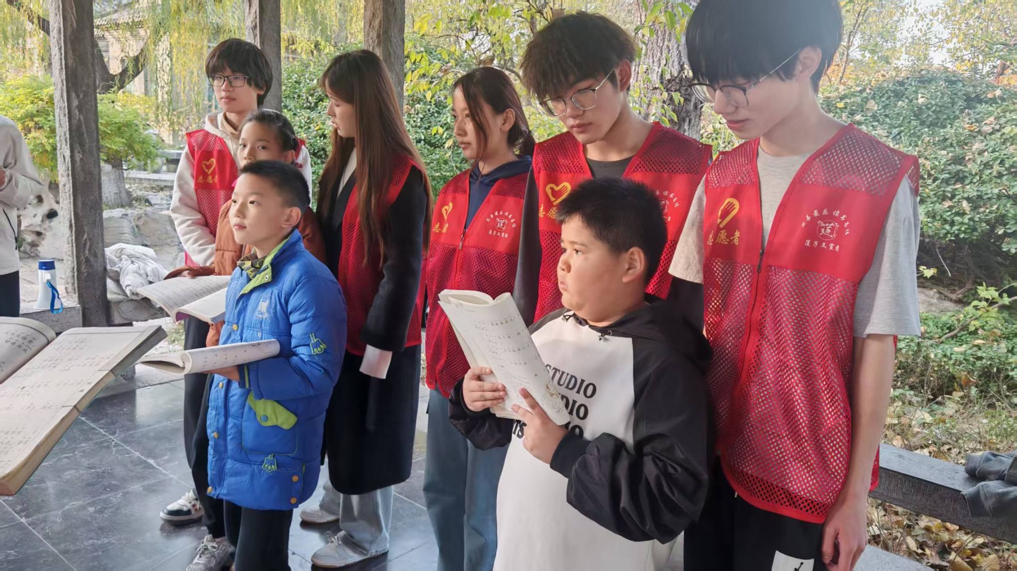 阳光先锋青年志愿者协会(以下简称"政法青协")于大明湖畔,与莲子文宣团共同开展传统文化实践活动。