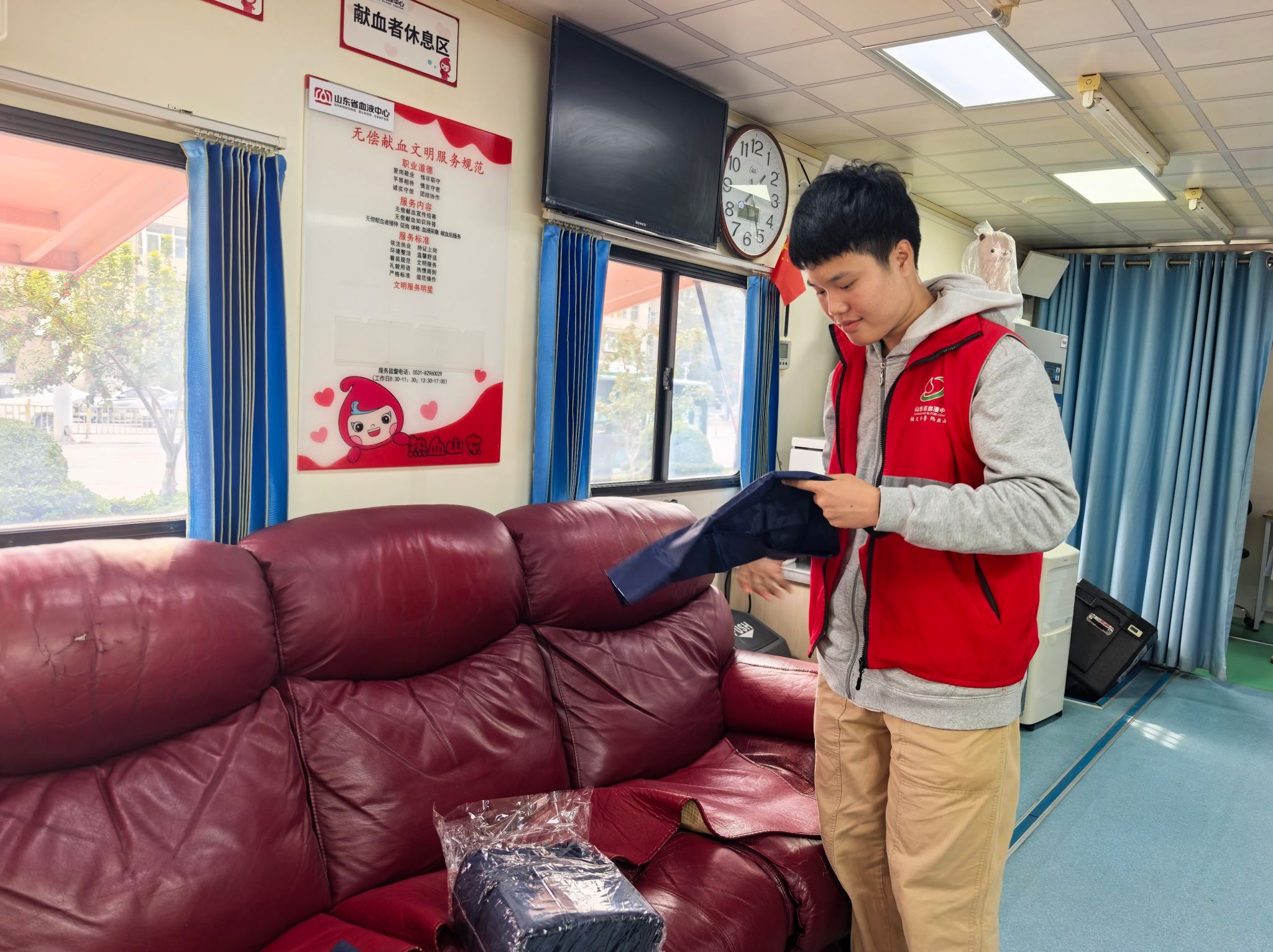 咨询台前,志愿者轮流值守,熟练为市民测量血压、核对信息,并递上温热红糖水与点心补充能量。面对初次献血者,志愿者耐心讲解流程与注意事项,以温和沟通缓解其紧张情绪,同时主动为献血者记录暖心瞬间,在献血过程中全程关注献血者身体状态,提供细致帮扶。献血车外,志愿者化身公益宣传员,手持宣传单向行人科普献血政策与科学常识,结合清明传承内涵呼吁市民参与公益。